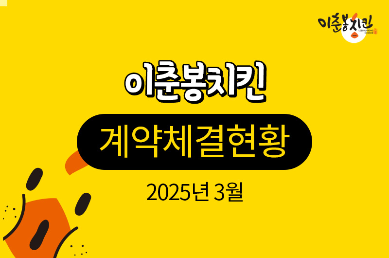 이춘봉치킨안산 초지점 계약체결완료 [계약일] 2025. 03. 06 [매장(예정)주소]경기도 안산..