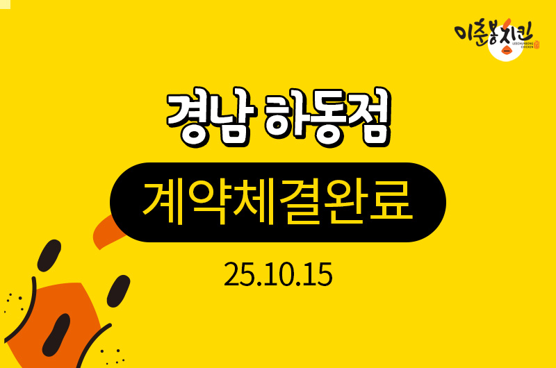 이춘봉치킨경남 하동점 계약체결완료 [계약일] 2025. 10. 15 [매장(예정)주소]경상남도 하..